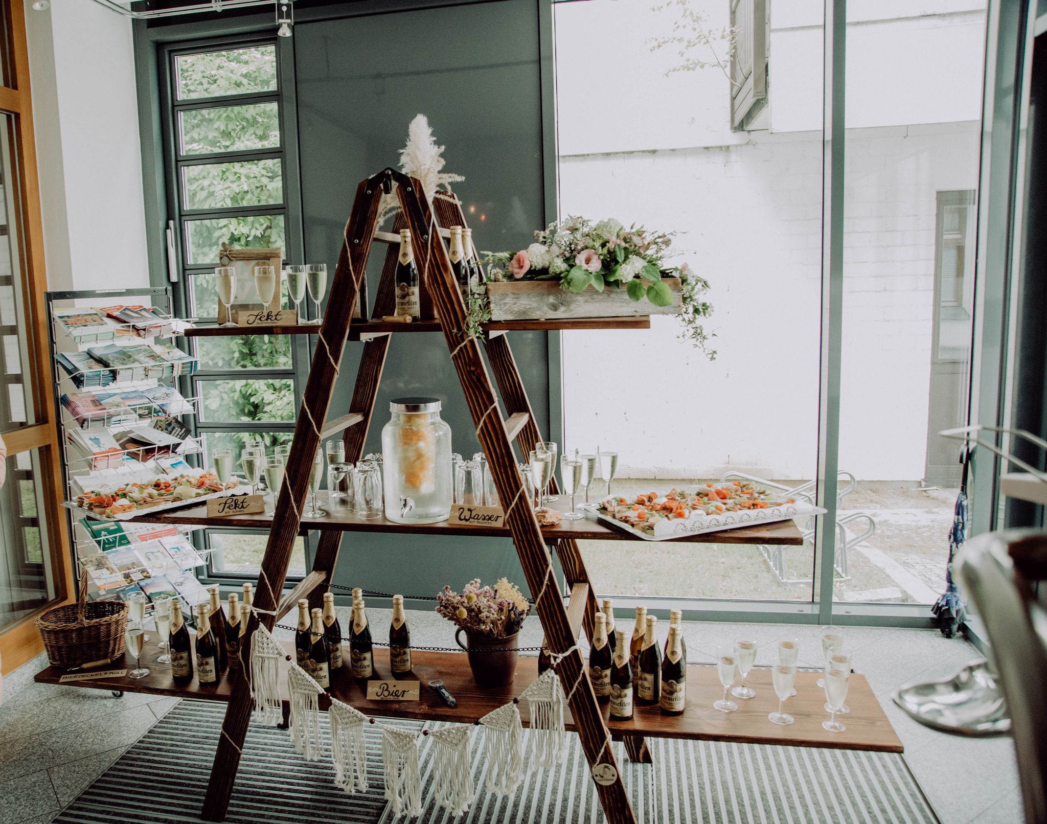 Auf Wunsch kannst du auch gegen Aufpreis die Dekoration, wie auf den Fotos abgebildet, mieten (ausser Gläser, Getränke/Getränkespender)