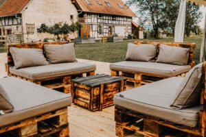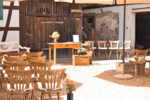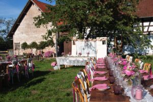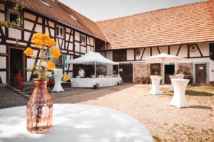 Der Hof liegt in der Ortenau-Region bei Achern, Baden-Württemberg, umgeben von Natur pur – ideal für Outdoor-Feiern mit freiem Himmel. Der liebevoll angelegte Bauerngarten mit Rosenbogen, Wiesen und Waldränder laden zu freien Trauungen ein.