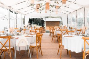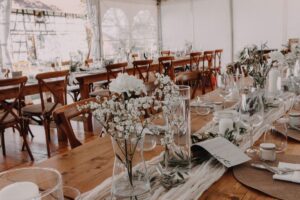 Exklusive Miete des gesamten Geländes erlaubt Open-End-Partys mit freier Cateringwahl, Servicepersonal, Getränken und Koordination durch lokale Partner. Optionen reichen von Trauungspaketen bis ganze Hochzeitswochenenden (ca. 150–200 €/Person inkl. Basismiete, Zelt etc.).