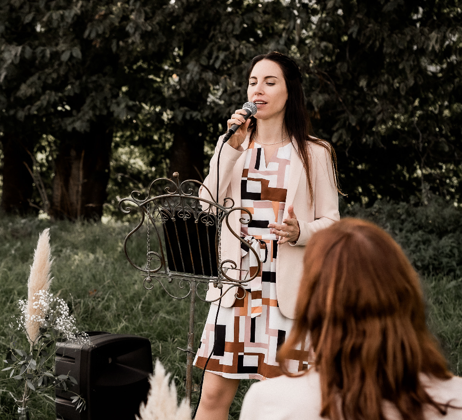 Als erfahrene freie Rednerin und Sängerin weiß ich, wie man eure Gäste unterhält, zum Lachen und zum Weinen bringt und gleichzeitig aber der Fokus auf euch beiden bleibt - auf eine angenehme Weise. Denn es geht am Ende an eurem Tag auch nur um euch, eure Geschichte und eure Emotionen.